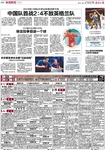 海南日报 体育新闻综合 011 2019-04-271 2019年04月27日 星期六