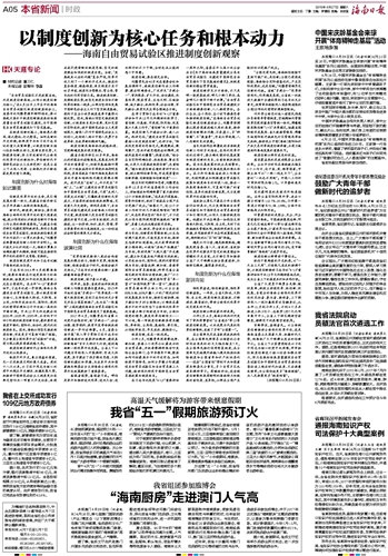 海南日报 本省新闻时政 005 2019-04-271 2019年04月27日 星期六