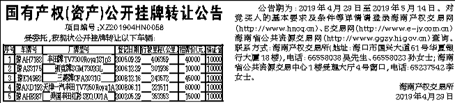海南省海口市中级人民法院公告