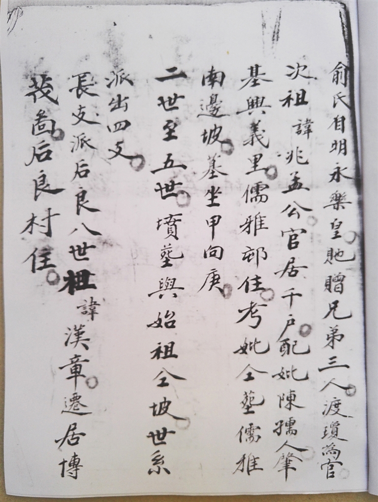 然而综合这些家谱信息,发现颇多错漏和相互抵牾之处,即使仅是儒雅村的,也有自相矛盾的地方。好在记载到最先上岛的俞氏先祖,年代相差不远,要么洪武,要么永乐,都在明代初年。