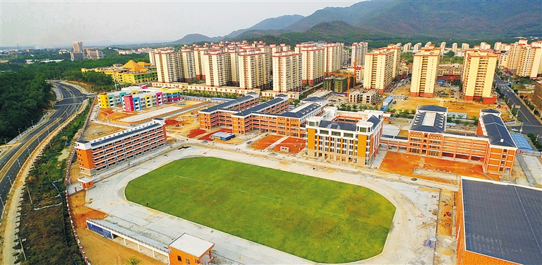 近日,在昌江黎族自治县石碌镇环城西路东侧的木棉学校及芒果幼儿园建设项目工程已进入尾声,正在进行绿化等收尾工作。该项目预计9月份开学投用,届时能提供2520个学位,这也填补了昌江城北区域此前没有九年制公办校的空白,也将进一步巩固提升县域义务教育基本均衡发展成果。