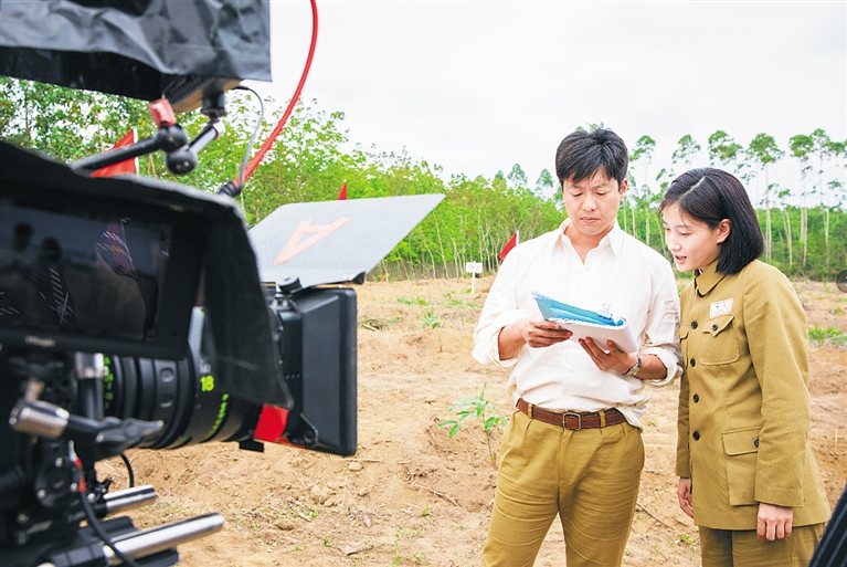 海南日报记者注意到,一个上午过去,为了剧中短短两分钟的镜头,演员反复拍摄了6次,小到一个表情、一个站位都要精益求精;近景、中景、特写,每个场景都要兼顾。监视器前,总导演王功目不转睛地盯着。