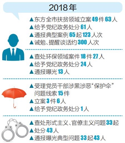 去年,东方聚焦扶贫领域虚报冒领、截留挪用、优亲厚友等频发高发腐败问题,开展扶贫资金使用情况专项督查,发现项目资金管理使用问题15个;聚焦扶贫领域干部作风不严不实问题,开展为期3个月的扶贫领域腐败和作风问题专项整治“百日大行动”,走村入户拉网摸排,严查快办问题线索,做到典型案例全覆盖通报。