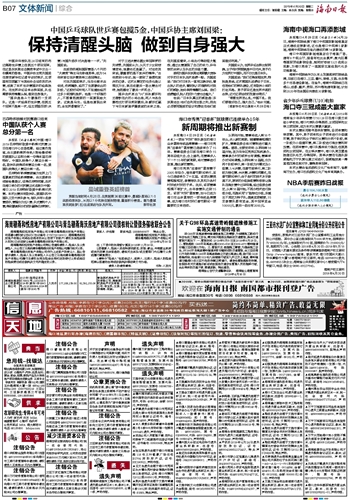 海南日报 文体新闻综合 015 2019-04-301 2019年04月30日 星期二