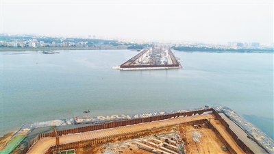 文明东越江通道项目,西起文明东与白龙路交叉口,东至南渡江东岸边的琼山大道,全长4.38千米,其中隧道段全长2.72千米,双向6车道。该项目作为海口首条过江隧道,建成后将承担促进海口主城区和江东新区两地联动发展的重任。文明东越江通道项目一期围堰工程即将完成,目前正在进行围护结构施工。