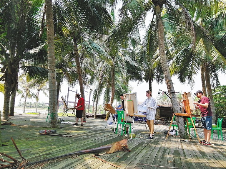 5月3日至5月5日,列宾美院师生与海南本地画家一同走进文昌市东郊椰林、铜鼓岭石头公园,以及琼海市潭门渔港等地,进行人文风景写生交流。列宾美院师生们在采风现场纷纷表示,这里有着与俄罗斯当地截然不同的气候环境,以及奇特的地貌、秀丽的山林和广袤的大海,为他们的艺术创作赋予了很多新灵感。