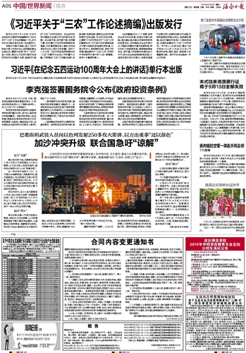 海南日报 中国/世界新闻综合 005 2019-05-061 2019年05月06日 星期一