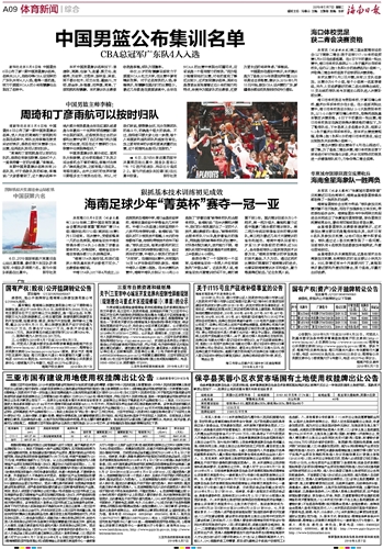 海南日报 体育新闻综合 009 2019-05-071 2019年05月07日 星期二