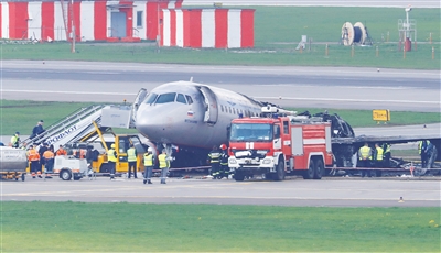 俄客机迫降起火