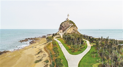 东方市鱼鳞洲灯塔山因有山体崩塌地质灾害隐患,于去年封闭施工,同时对景区周边的环境进行综合整治。今年年初完工后,景区变得更漂亮了。图为航拍的鱼鳞洲风景区本报记者 陈元才 特约记者 彭珊珊 摄