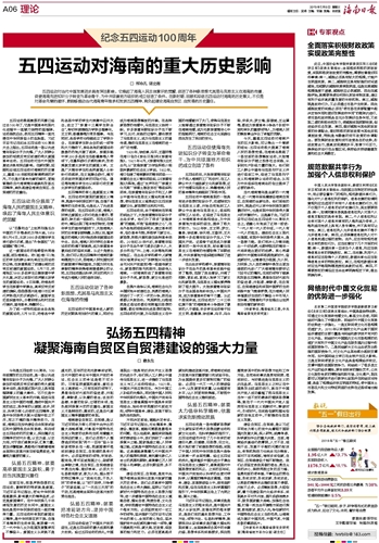 弘扬五四精神 凝聚海南自贸区自贸港建设的强大力量