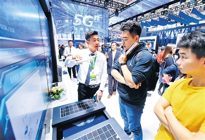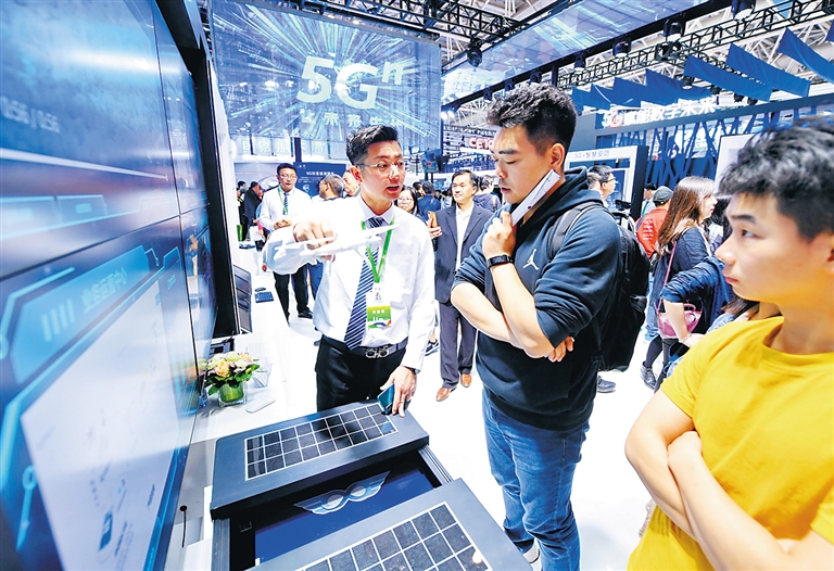 5月8日,工作人员在数字中国建设成果展览会上向参观者介绍产品。