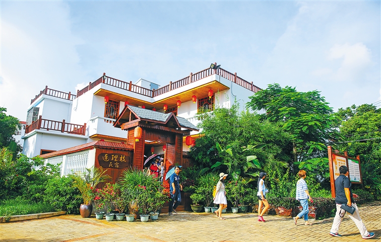 古朴青砖建成的民居,爬藤墙内庭院整洁干净……如今的演丰镇连理枝渔家乐民宿,从餐饮到住宿,到电瓶车观光,已经形成了一处独特的乡村景观带;不仅如此,这里还是省级民宿创建示范点,五椰级乡村旅游点。