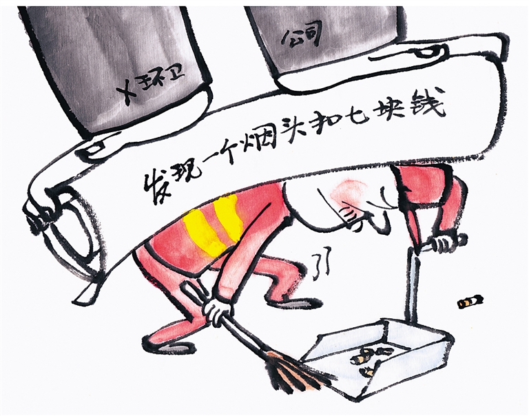 环卫管理精细起来,考核量化标准,问责严格严厉,这些都没有问题。然而,环卫是一个系统工程,环卫工人只是责任链条上的一环,地上有烟头难道只是环卫工人的过错?如果把环境治理的担子都压给环卫工人,将治理不力的责任都推给他们,是不是有“捏软柿子”之嫌?一项科学合理的考核制度,只是提高了质量标准、增加了工作任务、加大了劳动强度,却不设法改善工作人员的待遇,甚至让后者时刻顶着被罚款、问责的压力,效果只能适得其反。别忘了,人性温情是管理应有底蕴。这正是: