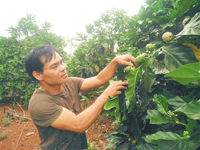 “诺丽果属热带水果,在海南岛分布很多,只是以往很少人注意到它们。”曾娟说,她和丈夫陈少明今年都52岁。10年前,为潜心研究了解和培育诺丽果产业,他们辞去了在海口的工作,回乡种起了诺丽果树。