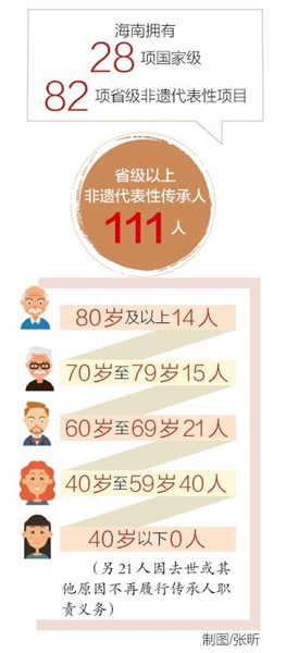 非遗代表性传承人平均年龄偏大,不是海南的特例,全国各地在非遗传承与保护工作中,都面临这一现实。按照我省目前执行的评定标准,申报省级非遗代表性传承人,必须从事该技艺实践超过20年,申报国家级非遗代表性传承人,时限要求则为25年以上。