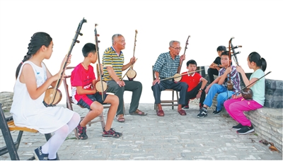 4月底的一天,在琼海市中原镇莲塘村,年过八十的王仕国与省国学教育协会专家展立新以及学生们共聚一堂,拉着椰胡,唱着由展立新谱曲的《敕勒歌》。凉亭下,几代人,曲声悠扬,为田园风光增添了不少情趣。