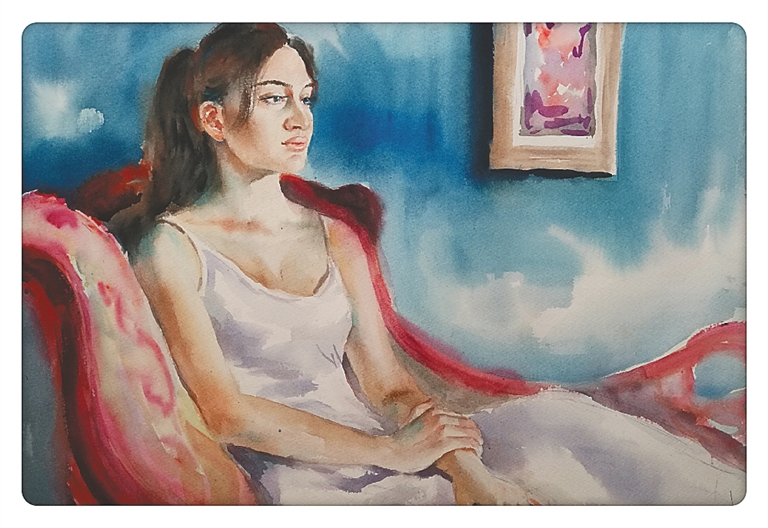 “晓曼人较为聪慧,对水色互融的戏剧性效果具有较强的敏感性,加上勤奋好学,学习不久便能较为熟练的掌握水彩技法,并在花卉与风景上获得自信。”看着金晓曼的进步,王家儒由衷地感到欣慰。对金晓曼来说,除了师从名师,天涯画室的画友也对她帮助很大,他们一起画画,每每遇到创作瓶颈,相互的鼓励给了她很多支持与安慰,她专画人物就是受了画友曾德锋的影响。
