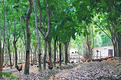 海南日报记者探访基地时注意到,整片橡胶林被铁丝网分隔为若干个轮养区,一些区域内山鸡悠然觅食,另一些区域却空空如也。“橡胶林下套养山鸡,虽说能帮助除草和施肥,但时间长了会对土壤造成破坏。”杨凌介绍,该基地严格按照环境承载能力进行合理布局和轮养,有效避免了养殖对环境带来的污染。