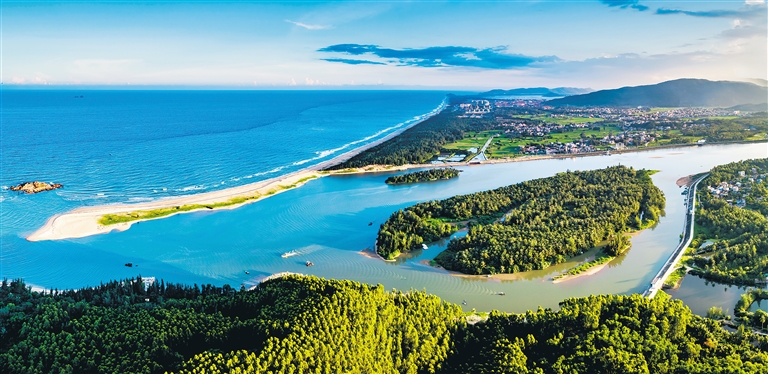攻坚抢救“护蓝”,高标准建设红树林国家湿地公园,足以证明当代陵水人对红树林的敬重。现已成型的公园海域,人工种养的红树林将海岸变得郁郁葱葱,大海与陆地和谐共处,不再是过去的“生死搏斗”,张扬出陵水生态建设保护的“红树林精神”。