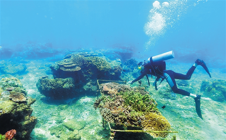 摸着石头过河就是摸规律。随着红树林湿地公园建设保护的广度和深度不断拓展,难度越来越大。陵水摸着石头过河,大胆试、大胆闯,不断攀越建设新境界,提高保护新高度。新村镇依新村潟湖重点建设的2000多亩红树林,已经起到了湖滨带植被的恢复作用,不断改善着湿地内的水体水质,便于珊瑚一点点地重新活起来。