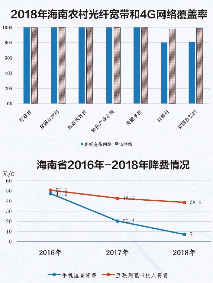 光纤网络和4G网络覆盖全部2573个行政村;固定宽带家庭普及率达105.4%,移动用户宽带用户普及率100.2%,提前完成“十三五”规划目标;取消移动流量漫游费,一年来移动流量资费下降64.3%,精准降费,为贫困户量身打造最大折扣电信资费优惠套餐;大力提升南海通信保障能力,电信普遍服务延伸至祖国最南端……一年来,时间这个伟大的书写者,忠实记录着海南通信人奋进的步伐。