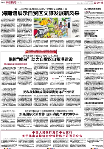 海南日报 本省新闻时政 002 2019-05-171 2019年05月17日 星期五