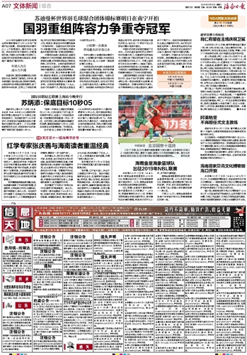 海南日报 文体新闻综合 007 2019-05-181 2019年05月18日 星期六