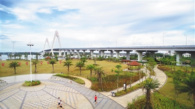 如今,文昌公园绿地系统更加完善。图为清澜大桥下的市民公园一角。 本报记者 李佳飞 通讯员 吴乾标 摄