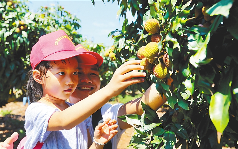 海口的火山荔枝正当红艳,妃子笑、白糖罂等品种荔枝最为出名,多汁肉嫩的口感吸引了大批“粉丝”。海口拥有我省最大连片荔枝种植基地,琼山区、秀英区等荔枝主要种植区推出了多条火山荔枝采摘游线路,在三门坡、云龙、红旗、旧州、大坡、甲子等乡镇设置了多个荔枝采摘游玩点,行程囊括采摘田间热带瓜果、品尝当地特色农家美食、体验火山田园风情、观赏荔枝主题创意田间艺术作品等,对于“荔枝迷”来说是深入感受荔枝文化的好机会。