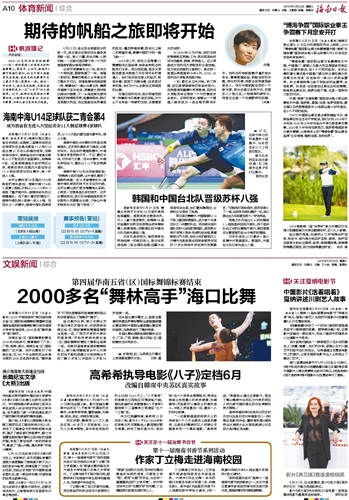 海南日报 体育新闻综合 010 2019-05-221 2019年05月22日 星期三