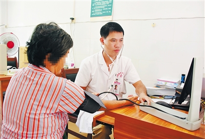 “最近感觉头重脚轻,强哥你帮我量下血压吧?”“强哥,你刚才说哪种药是饭前吃的?”……5月17日一早,7时半不到,在文昌东郊镇中心卫生院的一间诊室里,医生“强哥”正在认真细致地给村民们看病,耐心回答着各种琐碎的问题。