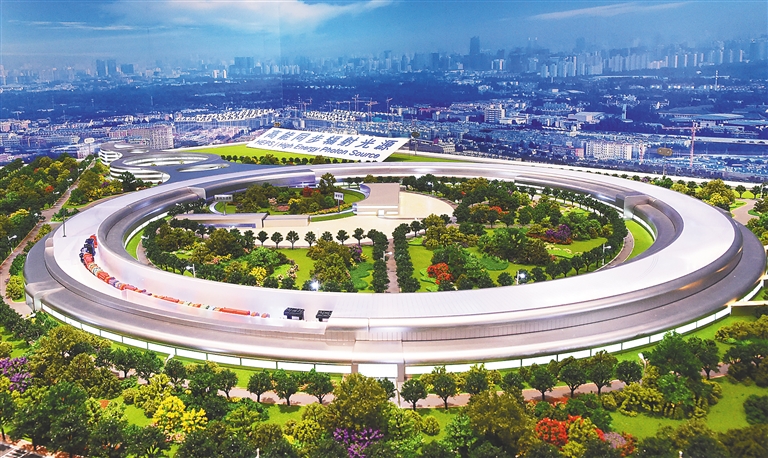 这是在2019年全国科技活动周暨北京科技周主场所展出的高能同步辐射光源模型(5月21日摄)。 新华社发(任超摄)