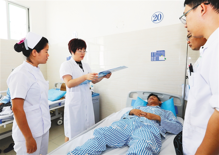 5月23日上午,陵水黎族自治县人民医院住院部A座第四层的20张床位已全部住满。“过去许多脑卒中患者直接转到三亚或海口的医院救治,没那么多人住在这里。” 内三科主任王立姝介绍,陵水县人民医院内三科于今年1月设立,如今越来越多的脑卒中患者不用出县就能得到有效治疗。