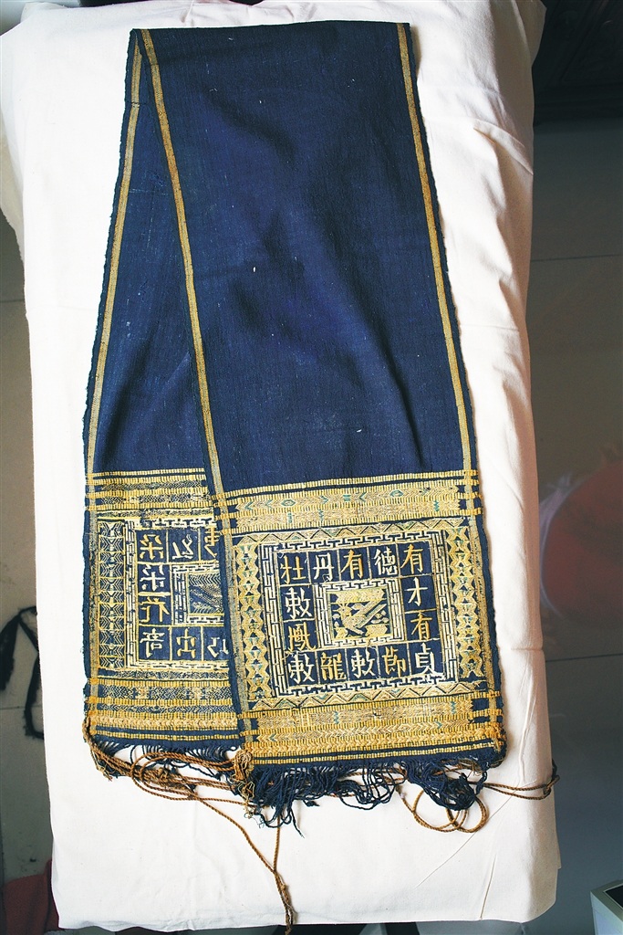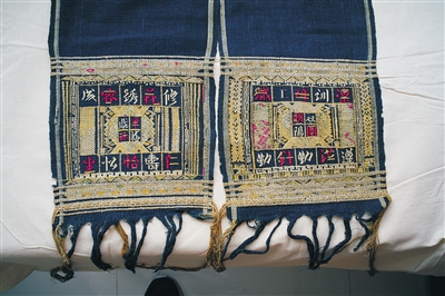 “这些早期的黎族绣字头巾,一般都是染好纱,织好布,再将文字和图案绣上去的。”在廖善新看来,黎族绣字头巾不仅是一件普通饰品,而是与长筒裙、上衣等组成一套完整的黎族服饰,属于实用品。从外形来看,黎族绣字头巾看似不太起眼,却蕴含着丰富的黎族民俗文化。