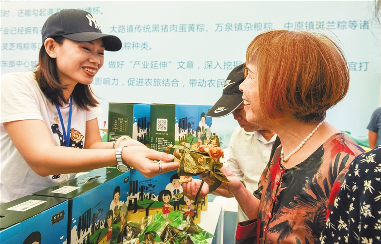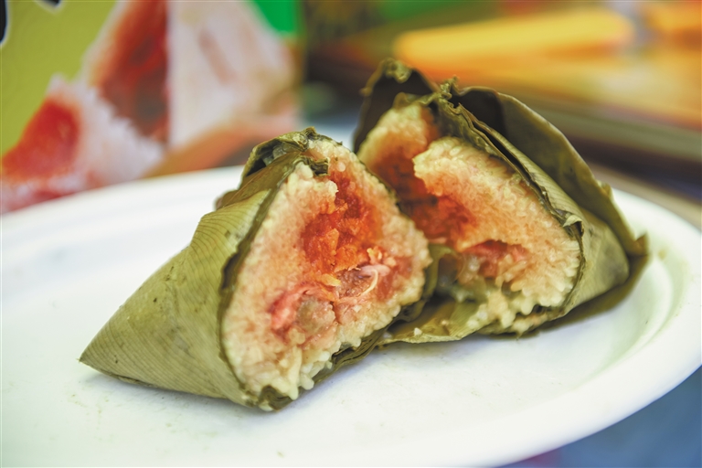 本次活动,有厂商带来了琼海的特色粽子,其中来自苗家的五色粽以及添加鸡屎藤制作的鸡屎藤粽吸引了市民的注意力。