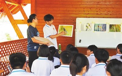 日前,海口市长流中学摄影社的同学们在自然教室里开启了第一课。在海口畓榃湿地研究所工作人员的带领下,同学们通过视频、拼图和实地观看近距离认识和了解了“最美小鸟”——蜂虎。