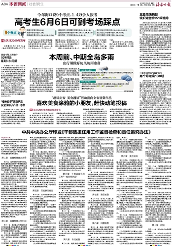 海南日报 本省新闻社会/民生 004 2019-05-281 2019年05月28日 星期二