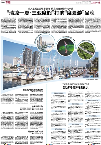 三亚作为中国知名的海滨度假城市,拥有独特的海洋度假旅游资源。受海洋调节和极高的森林覆盖率影响,三亚夏季避开了“火炉”般炙热的天气,海风吹拂带来的清爽,海韵激荡带来的浪漫,成为很多游客心之向往的度假胜地。再加之夏季三亚客流较为平稳,涉旅机构纷纷适时推出多样优惠度假产品,没有了冬季集聚的游人,多元化丰富的特惠游让游客的“三亚假期”更为超值。为让更多游客感受宜游的夏季旅游,三亚今年再度开启“清凉一夏·三亚度假”主题营销活动,集聚行业力量推出“休闲游”“亲子游”“婚庆游”等主题系列优惠产品,丰富市场供给;集合营销资源深挖杭州、上海、长沙、武汉、重庆、南昌等城市潜力,精准市场投放。