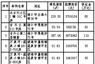 公告期:2019年5月30日至2019年6月13日。标的现状、竞买保证金等具体详情请登录海南产权交易网(http://www.hncq.cn)、E交易网(http://www.e-jy.com.cn)、海南省公共资源交易网(http://zw.hainan.gov.cn/ggzy/)查询。联系方式:海口市国兴大道61号华夏银行大厦18楼海南产权交易所,电话:66558003施女士、66558023孙女士;海南省公共资源交易中心1楼受理大厅4号窗口,电话:李女士0898-65237542。