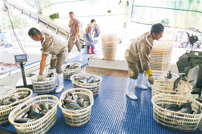 “这批是国外订单,不同国家和地区对于去皮深浅有不同要求。”海南勤富食品有限公司内贸部经理周经纬介绍,去年该公司国外、国内销量比例为9:1。据悉,2018年,该公司出口水产品1003个货柜,2019年计划出口1300个货柜,同时国内销售金额力争实现50%增长。