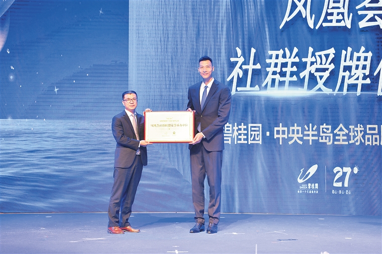 不仅如此,篮球运动员、碧桂园·中央半岛明星代言人易建联作为神秘嘉宾登场,并向该项目物业公司授予凤凰荟社群联盟荣誉承办单位牌匾。