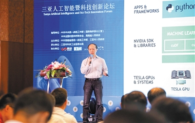 ① 三亚华洽会人工智能暨科技创新论坛,与会嘉宾进行主旨演讲。