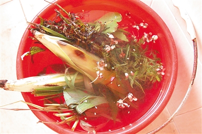 “我小时候洗龙水,母亲会提前找来好几种植物,其中主要有艾草,然后在端午节那天一早打来冰凉的井水浸泡,等浸泡到下午,水染上了草的墨绿色,便可以用来冲凉了。”乐东黎族自治县佛罗镇年过七旬的居民吴申坤介绍,这些泡龙水的植物具有清热、消炎、解毒、祛风的作用。