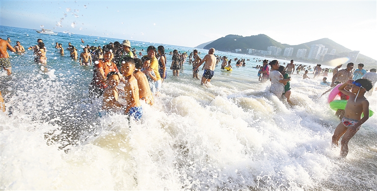 而临近海与河流的居民,洗龙水的方式往往更直接,他们会在端午节的这一天,一起聚集到海边或河边,跳入水中尽情享受亲水的欢乐。如今这个习俗在海口假日海滩和三亚大东海等地每年都会吸引大量市民游客参与。如2018年端午节期间,三亚大东海海滩每日有万人共浴,场面如下饺子般壮观。
