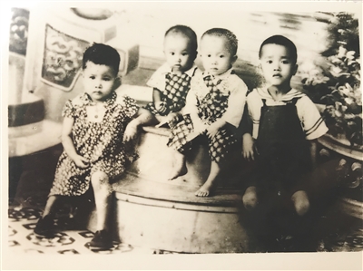 “这是我大哥、我二姐,还有我弟弟。当时我才3岁,完全不记得当时拍摄的场景了。只知道这张照片是在琼海嘉积的照相馆拍的。”符法回忆,当时,他的父母在琼海嘉积中学当教师,虽然老家在文昌,但他们兄弟姐妹几个都是在嘉积出生的。