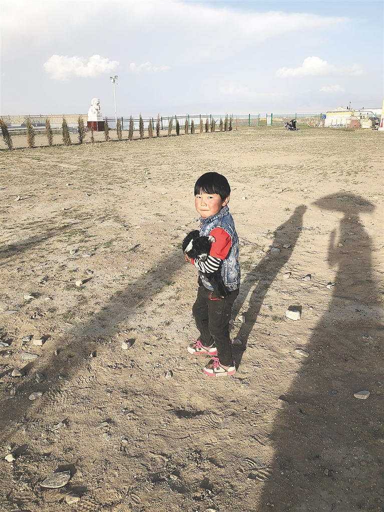 “姐姐,买气球吗?很便宜,只要一块钱。”在青海湖,我们遇见了一名四五岁大小的藏族小男孩,稚嫩的脸蛋黑中带红,十分可爱。小男孩的身旁还有一只黑色的小羊羔,他走哪小羊羔就跟到哪,看得出来这是他亲密的伙伴。