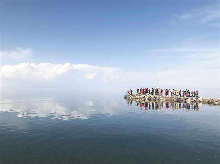 青海湖一望无垠,像大海,但没有汹涌的海浪,恬静中带着神秘,不时有鸟儿从湖面上掠过,又增添了几分生机。我们坐在湖边,望着碧蓝透澈的湖水,享受着内心的平静,度过了一个安逸惬意的下午。