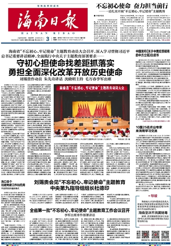 | 海南日报 头版 001 2019-06-031 2019年06月03日 星期一 |