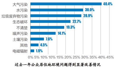 受访者反映,其居住地面临的多种类型环境问题显著改善。从各地改善情况来看,黑龙江、内蒙古、海南等地认为土壤污染得到显著改善的人数占比最多;北京、河北、天津、山东等地认为当地大气污染问题得到显著改善的占比最多。